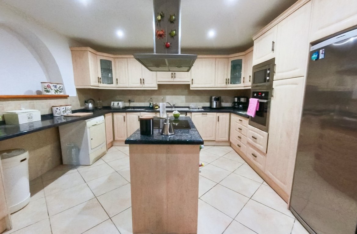 A large farmhouse for sale located in beautiful Relleu, Hoyas del Rio, 1.5 km from the Relleu municipality. , located in a privileged location. This magnificent property offers over 600 m2; build and a 20,000 m2; plot. All structures and land are registered. The property is fully fenced. The house offers 2 dining rooms, 2 kitchens, 7 bedrooms, 2 bathrooms, several attics, several storage rooms. Everything is functional and in original state. It benefits from stone walls and high ceilings with wooden beams. It has a closed garage and a workshop. The plot has electricity, drinking water and well water, also internet. There are several olive and almond trees. Asphalt road practically to property entrance. You can make the pool without a complication. Easily open a rural complex for tourist use.