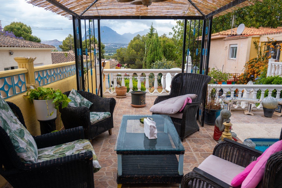 Unique spacious Villa. This captivating property, brimming with character and located in the charming town of Albir. Just moments away from the renowned Sha Wellness Clinic, this home offers spacious and flexible living in one of the most desirable locations. Spread over two floors, this property is ideal for families or investors seeking to optimize rental potential. The layout allows it to be divided into two independent residences, each with its own private entrance. The ground floor features 2 bedrooms and a well-appointed kitchen, while the upper floor offers an additional kitchen and 3 generously sized bedrooms, with both master bedrooms boasting en-suite bathrooms. The outdoor area is perfect for hosting or relaxing, complete with a sparkling pool and a private bar, where you can unwind with drinks made from your very own lemon trees. Whether you’re looking for a home to personalize or a move-in-ready opportunity, this property combines immense potential with an unbeatable location. Don’t wait – schedule a viewing today and make this dream home yours!