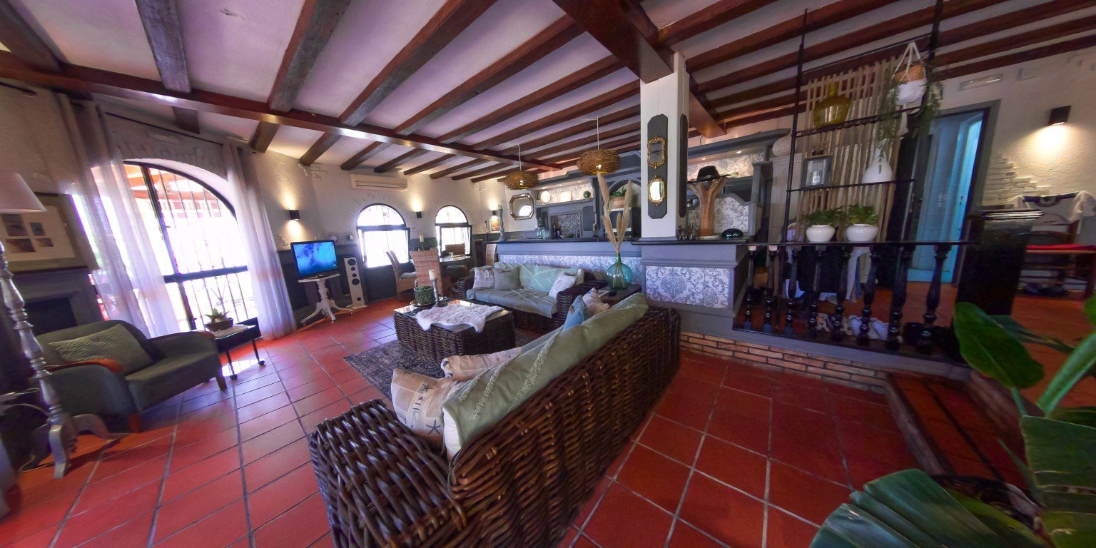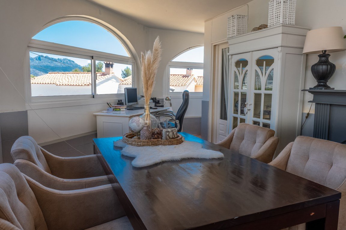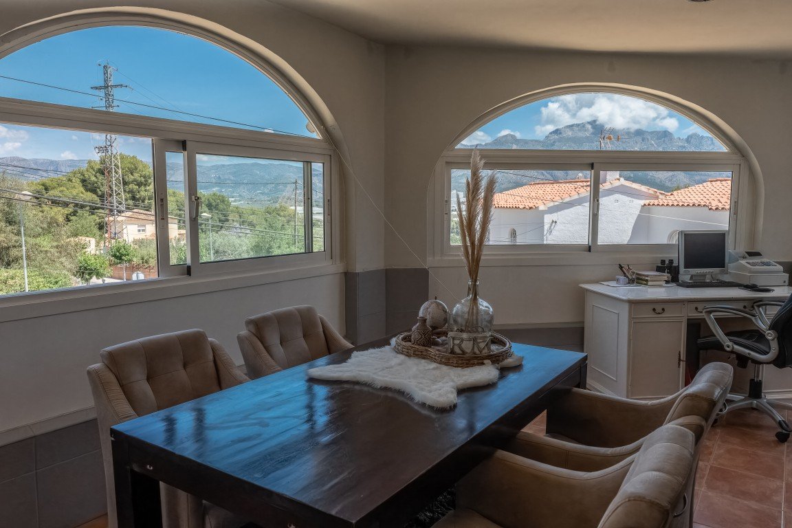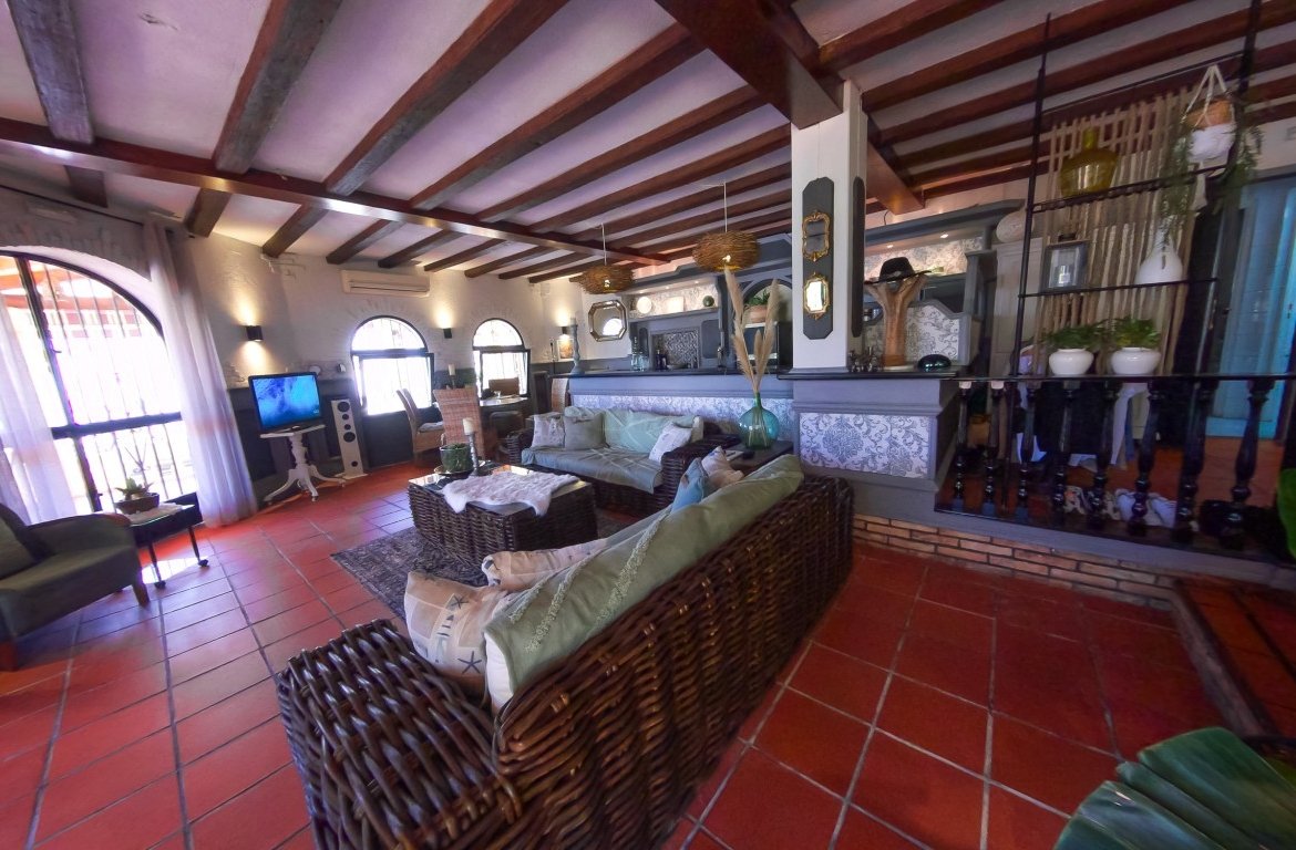 This spacious detached villa is spread over 288 square metres and has many possibilities dependent on which lifestyle/business venture you are looking for! The property was previously running as a successful restaurant business with private accommodation and has a restaurant licence if you wish to start trading as a business. The owner closed the restaurant back in 2013 (still have access to accounts should you wish to enquire further on this possibility) The property is situated in a large urbanisation and would service the entire area as this is the only bar/restaurant there. {pagebreak} The owner then changed the restaurant part of the property into a sleek designed ground floor open plan apartment which offers a stylish lay out, beamed ceilings, lots of light and an abundance of character. Leading out of the ground floor accommodation is a large wrap-around terrace and patio area with panoramic views of the stunning countryside and mountains in this local area. The plot also has barbecue facilities. There is plenty of room if you wished to add a pool, also access for off street parking is another option. On the ground floor there are a further two rooms (currently used for storage) which could easily be renovated into an additional apartment.