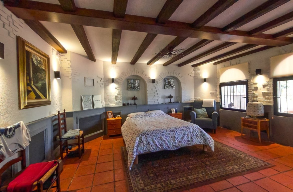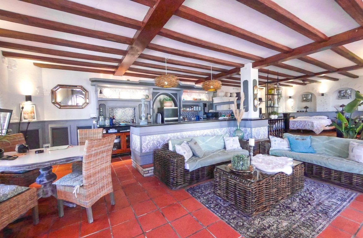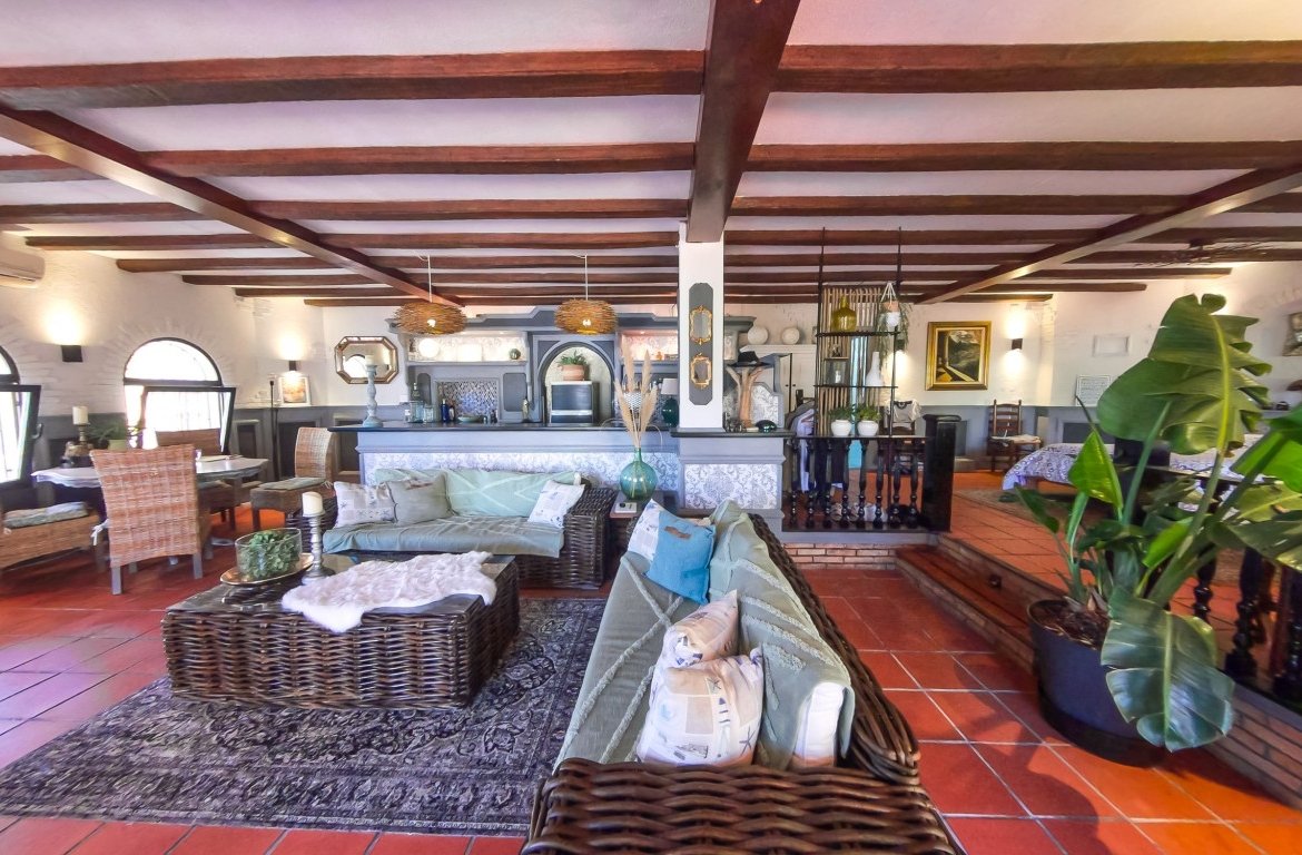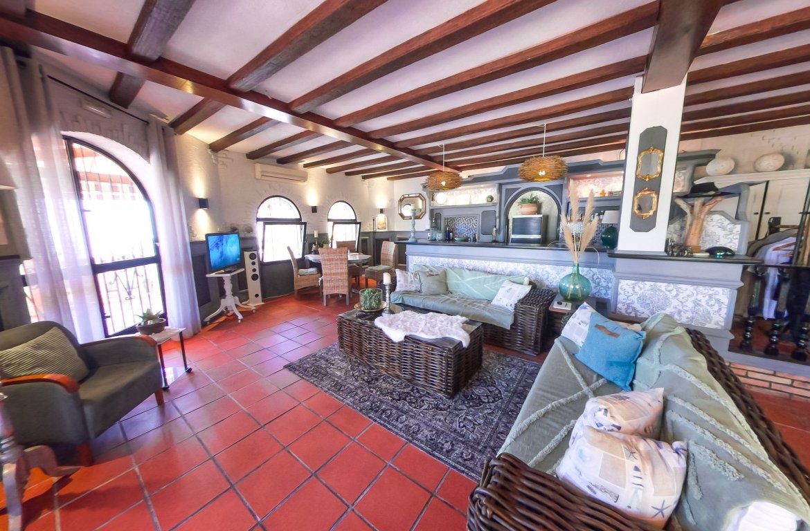 This spacious detached villa is spread over 288 square metres and has many possibilities dependent on which lifestyle/business venture you are looking for! The property was previously running as a successful restaurant business with private accommodation and has a restaurant licence if you wish to start trading as a business. The owner closed the restaurant back in 2013 (still have access to accounts should you wish to enquire further on this possibility) The property is situated in a large urbanisation and would service the entire area as this is the only bar/restaurant there. {pagebreak} The owner then changed the restaurant part of the property into a sleek designed ground floor open plan apartment which offers a stylish lay out, beamed ceilings, lots of light and an abundance of character. Leading out of the ground floor accommodation is a large wrap-around terrace and patio area with panoramic views of the stunning countryside and mountains in this local area. The plot also has barbecue facilities. There is plenty of room if you wished to add a pool, also access for off street parking is another option. On the ground floor there are a further two rooms (currently used for storage) which could easily be renovated into an additional apartment.