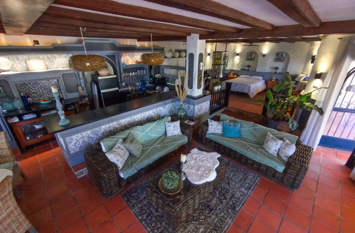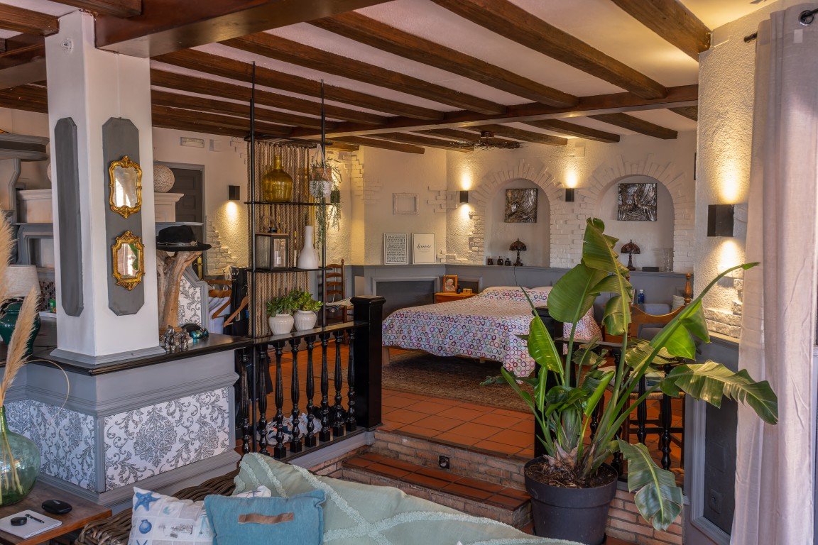 Also on this level is a further apartment with a living room, kitchenette, bedroom and spacious bathroom. This apartment also benefits from its own small private garden area. The access to the upper floor has its own private entrance around the side of the main property with its own private courtyard. Upstairs is a generous sunny lounge with large windows, overlooking the mountains, open kitchen, big bedroom, walk in closet and full bathroom. There is also another private entrance at this part of the property that consists of another apartment which is distributed in living room, with kitchenette, 1 bedroom, 1 bathroom. Whether it is your next home, business or investment you are currently searching for this dream property has it all covered!